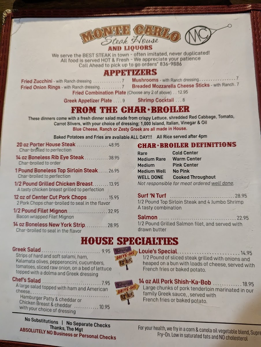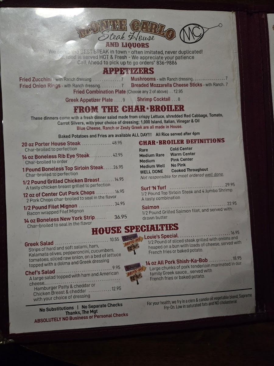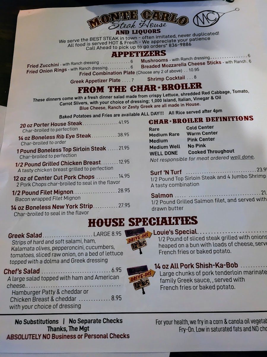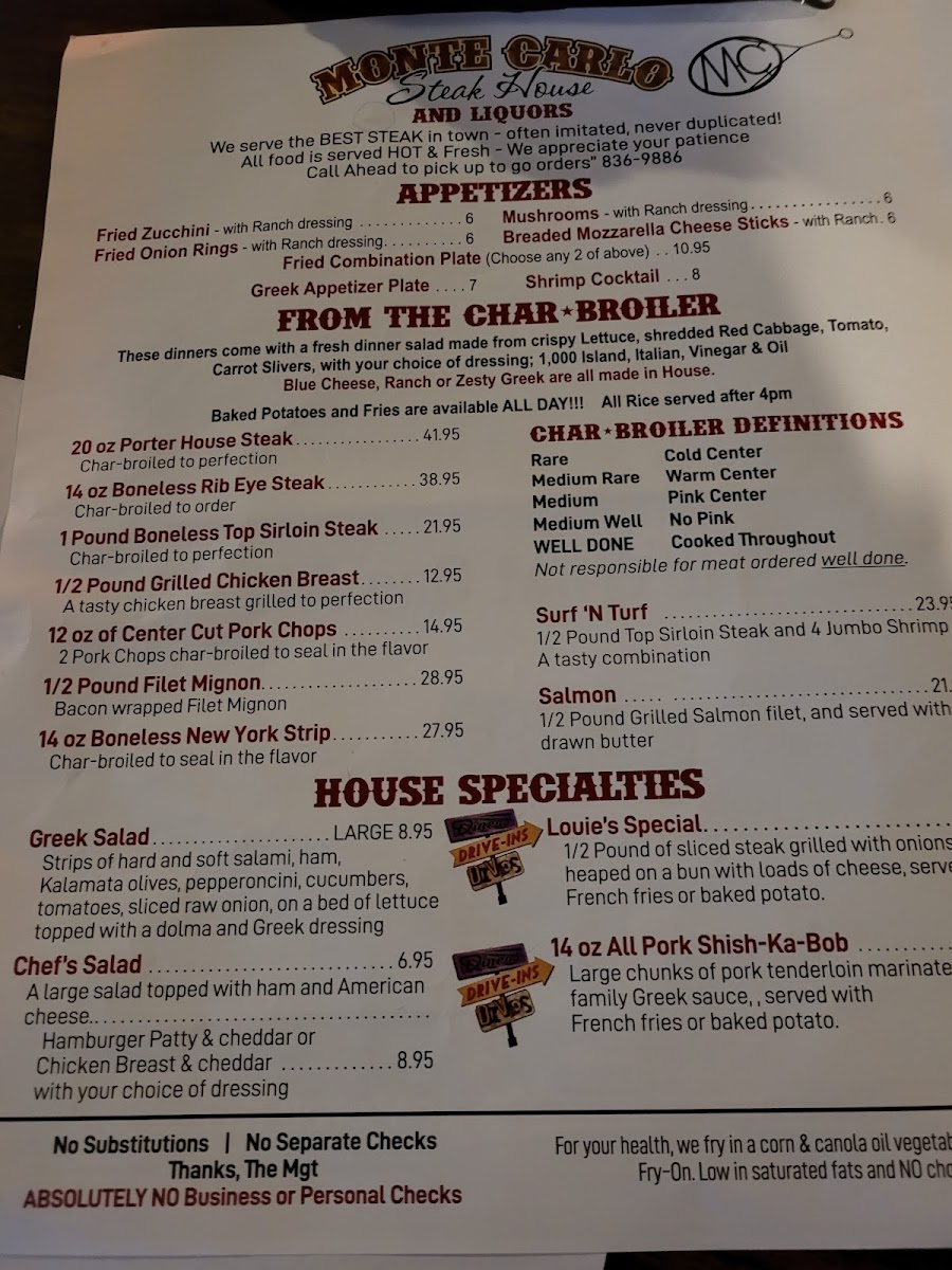 As you savor every bite, you’ll understand why locals and visitors alike cherish Monte Carlo Liquors & Steak House. It's more than just a meal; it’s a celebration of culinary simplicity and community spirit. So, make your way over to Monte Carlo Liquors & Steak House, where every dish tells a story, and every visit leaves you yearning for more.